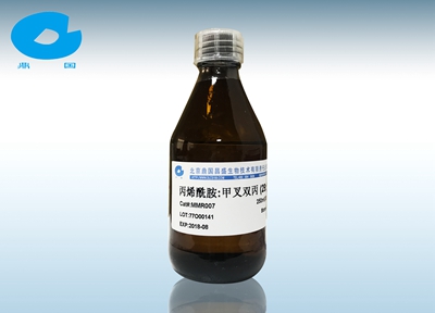 聚丙烯酰胺凝膠電泳是以聚丙烯酰胺凝膠作為支持介質(zhì)的電泳方法。在這種支持介質(zhì)上可根據(jù)被分離物質(zhì)分子的大小和分子電荷的多少來分離,幾乎所有的蛋白質(zhì)電泳分析都是在聚丙烯酰胺凝膠(Poly Acrylamide Gel Electrophoresis, PAGE))上進行的。丙烯酰胺是配制聚丙烯酰胺凝膠(PAGE 膠)和 SDS-PAGE 凝膠的主要成份,是生命科學(xué)實驗室必備的試劑。30%丙烯酰胺(30% Acrylamide,簡稱 AcryBis)是丙烯酰胺(Acrylamide)和甲叉雙丙烯酰胺(Bisacrylamide)的混合物,其中丙烯酰胺與甲叉雙丙烯酰胺的比例為 29:1。本產(chǎn)品采用優(yōu)質(zhì)進口試劑配制而成,儲存穩(wěn)定,為生物學(xué)實驗室最常用的儲備試劑之一。