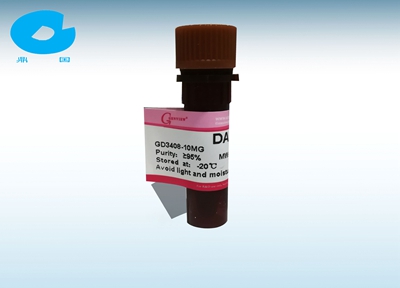 DAPI 是一種可以穿透細(xì)胞膜的藍(lán)色熒光染料。和雙鏈 DNA 結(jié)合后可以產(chǎn)生比 DAPI 自身強(qiáng) 20 多倍的熒光。DAPI 染色常用于細(xì)胞凋亡檢測,免疫熒光檢測等。DAPI 的最大激發(fā)波長為 340nm,最大發(fā)射波長為 488nm;DAPI 和雙鏈 DNA 結(jié)合后,最大激發(fā)波長為 364nm,最大發(fā)射波長為 454nm。